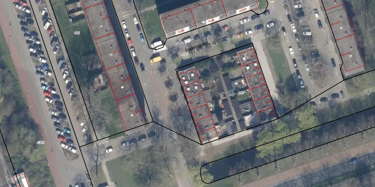 Het perceel waarop Loderstraat 149 staat heeft een oppervlakte van 1836 m². Dit is een zeer groot perceel. De perceeloppervlakte wordt geregistreerd door het Kadaster. Gedetailleerde informatie over de maten van dit perceel kunt u vinden in het rapport Kadastrale kaart met maatvoering van Loderstraat 149.