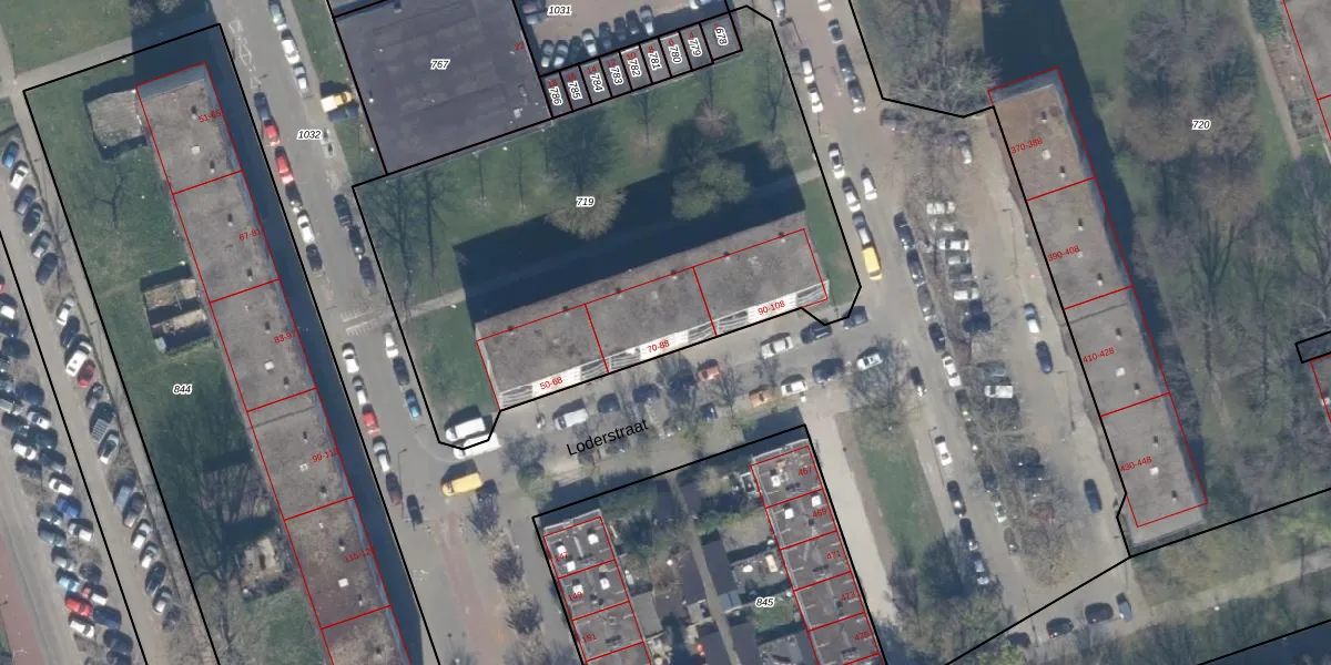 Loderstraat 86 is gelegen op kadastraal perceel SBK01D719. Deze kadastrale aanduiding is uniek en wordt gebruikt door het Kadaster om eigendomsrechten en andere zakelijke rechten vast te leggen. Het perceel maakt onderdeel uit van de kadastrale gemeente Schiebroek.