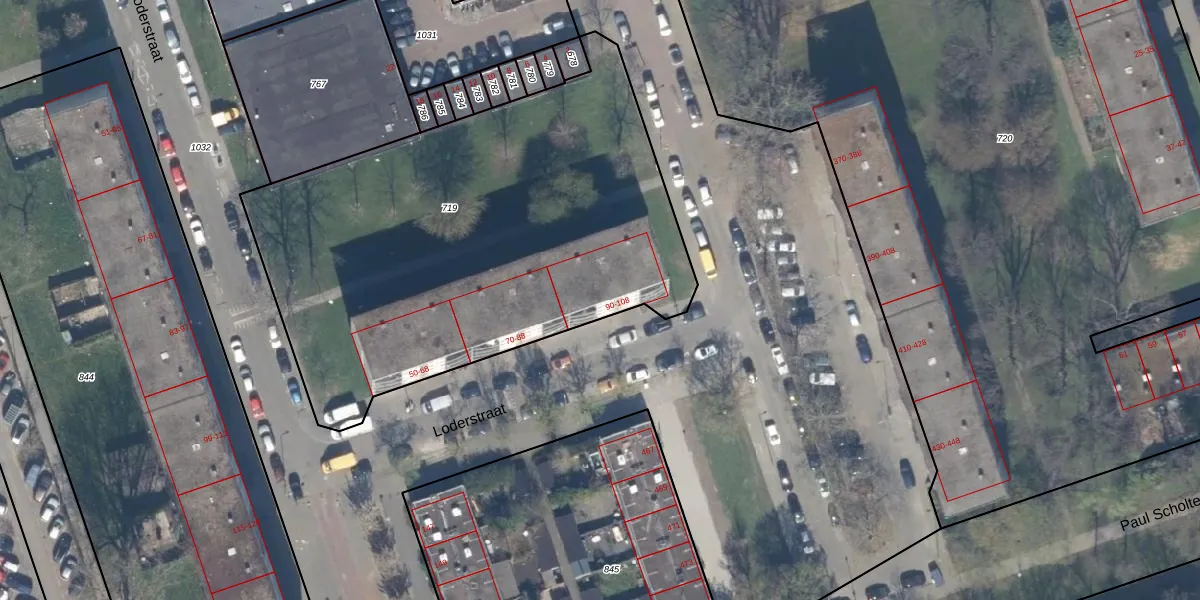 Loderstraat 92 is gelegen op kadastraal perceel SBK01D719. Deze kadastrale aanduiding is uniek en wordt gebruikt door het Kadaster om eigendomsrechten en andere zakelijke rechten vast te leggen. Het perceel maakt onderdeel uit van de kadastrale gemeente Schiebroek.