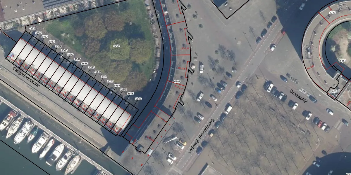 Lodewijk Pincoffsweg 107 is gelegen op kadastraal perceel RTD05Q6299. Deze kadastrale aanduiding is uniek en wordt gebruikt door het Kadaster om eigendomsrechten en andere zakelijke rechten vast te leggen. Het perceel maakt onderdeel uit van de kadastrale gemeente Rotterdam.