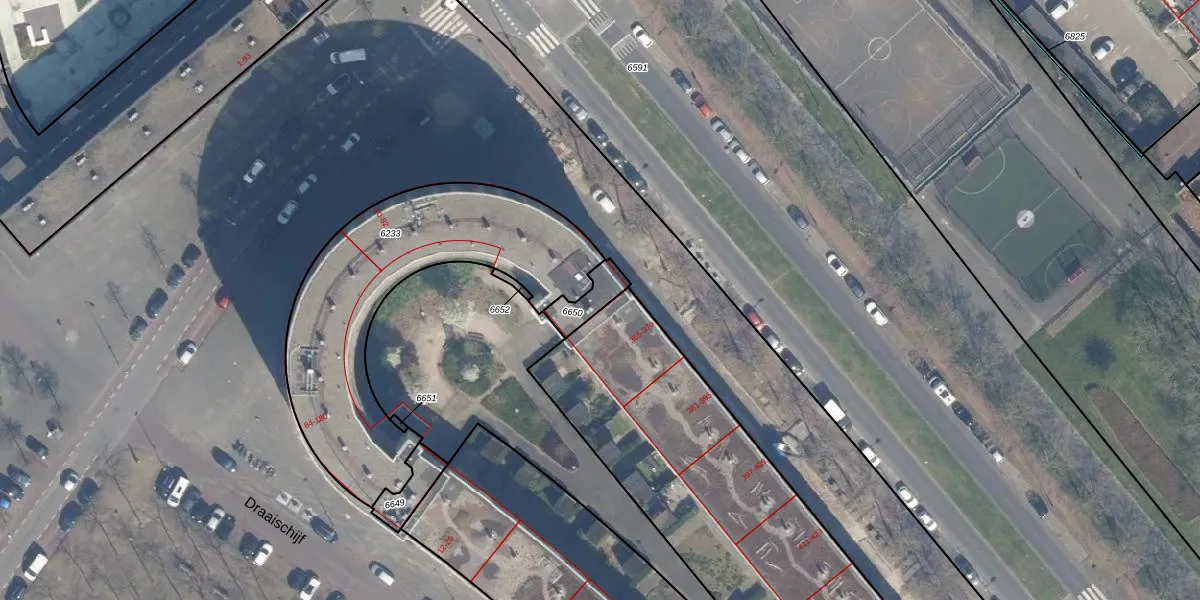 Het perceel waarop het adres ligt is RTD05-Q-6650. De afkorting 'RTD05' staat voor kadastrale gemeente Rotterdam. Het perceel is 72 m² groot. Dat is kleiner dan de gemiddelde perceeloppervlakte in Rotterdam, dat op 1401,79 m² ligt. Het kleinste perceel in de kadastrale gemeente is 0 m² groot. De grootste perceeloppervlakte is 36,8 ha. Op het perceel zijn 38 adressen aanwezig. De huidige grenzen van het perceel zijn digitaal in de Basisregistratie Kadaster (BRK) geregistreerd op 22-07-2009.
