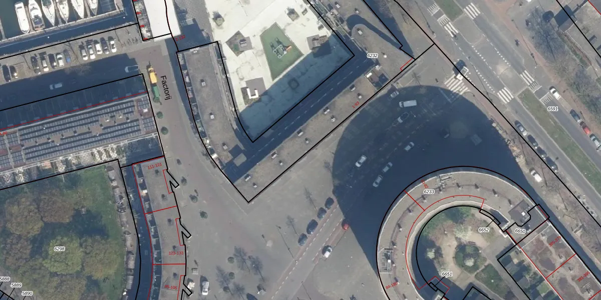 Het perceel waarop het adres ligt is RTD05-Q-6232. De afkorting 'RTD05' staat voor kadastrale gemeente Rotterdam. De oppervlakte van het perceel is 2768 m². Dat is groter dan gemiddeld in Rotterdam, waar de gemiddelde perceeloppervlakte op 1401,79 m² ligt. De grootste perceeloppervlakte in de kadastrale gemeente is 36,8 ha. De kleinste oppervlakte bedraagt 0 m². Er zijn 96 adressen aanwezig op het perceel. De laatste wijziging in het de Basisregistratie Kadaster (BRK) was op 22-07-2009.