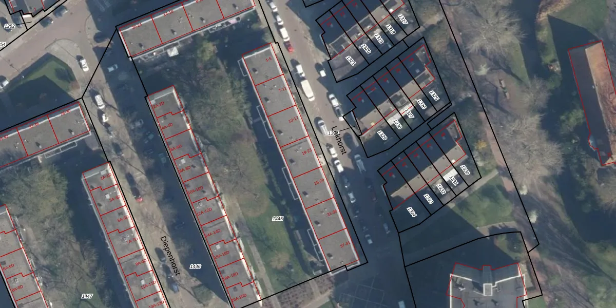 Het perceel waarop Lokhorst 23 staat heeft een oppervlakte van 4642 m². Dit is een zeer groot perceel. De perceeloppervlakte wordt geregistreerd door het Kadaster. Gedetailleerde informatie over de maten van dit perceel kunt u vinden in het rapport Kadastrale kaart met maatvoering van Lokhorst 23.