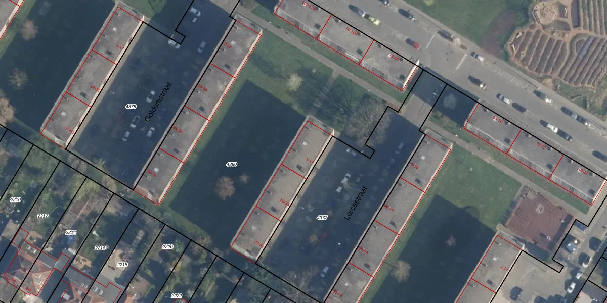 Het perceel waarop Lorcastraat 13 staat heeft een oppervlakte van 1,9 ha. Dit is een zeer groot perceel. De perceeloppervlakte wordt geregistreerd door het Kadaster. Gedetailleerde informatie over de maten van dit perceel kunt u vinden in het rapport Kadastrale kaart met maatvoering van Lorcastraat 13.