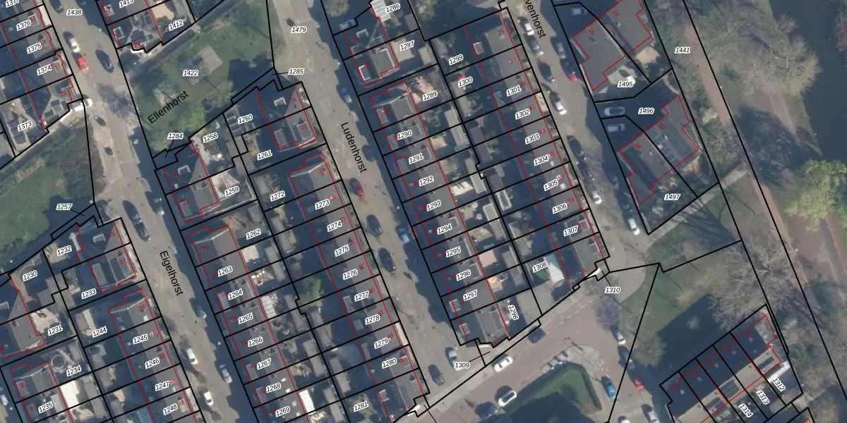 Het perceel waarop Ludenhorst 38 staat heeft een oppervlakte van 121 m². Dit is een middelgroot perceel. De perceeloppervlakte wordt geregistreerd door het Kadaster. Gedetailleerde informatie over de maten van dit perceel kunt u vinden in het rapport Kadastrale kaart met maatvoering van Ludenhorst 38.