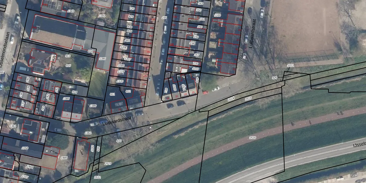 Luipaardstraat 23 is gelegen op kadastraal perceel KLG00H1021. Deze kadastrale aanduiding is uniek en wordt gebruikt door het Kadaster om eigendomsrechten en andere zakelijke rechten vast te leggen. Het perceel maakt onderdeel uit van de kadastrale gemeente Kralingen.