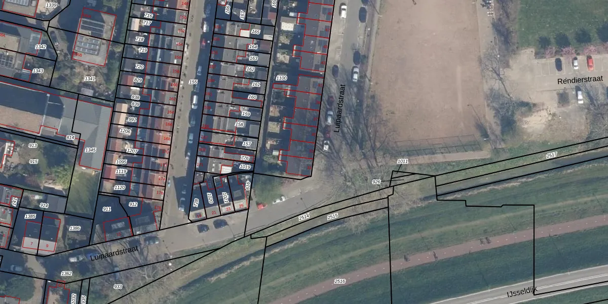 Luipaardstraat 33 is gelegen op kadastraal perceel KLG00H1100. Deze kadastrale aanduiding is uniek en wordt gebruikt door het Kadaster om eigendomsrechten en andere zakelijke rechten vast te leggen. Het perceel maakt onderdeel uit van de kadastrale gemeente Kralingen.