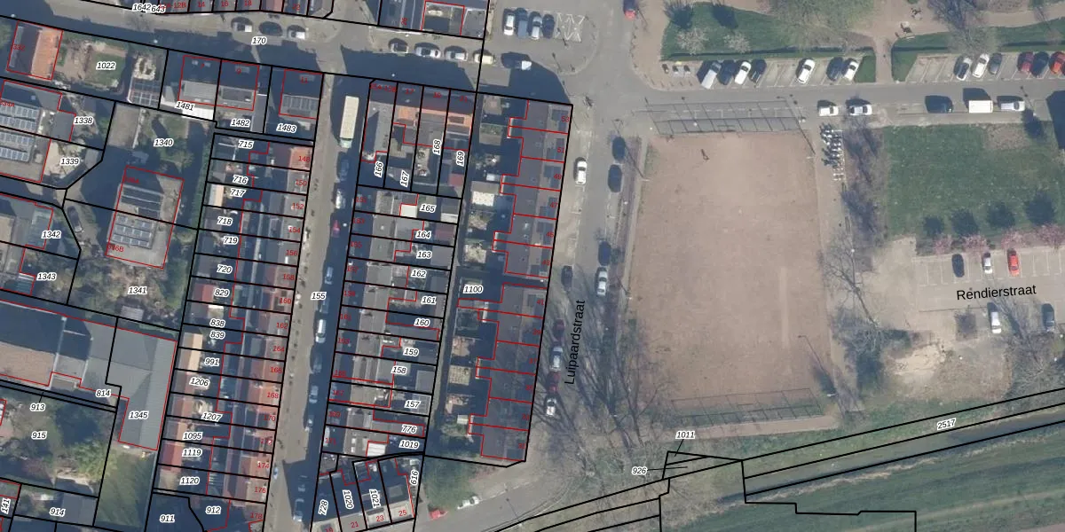 Het perceel waarop Luipaardstraat 43 staat heeft een oppervlakte van 1285 m². Dit is een zeer groot perceel. De perceeloppervlakte wordt geregistreerd door het Kadaster. Gedetailleerde informatie over de maten van dit perceel kunt u vinden in het rapport Kadastrale kaart met maatvoering van Luipaardstraat 43.