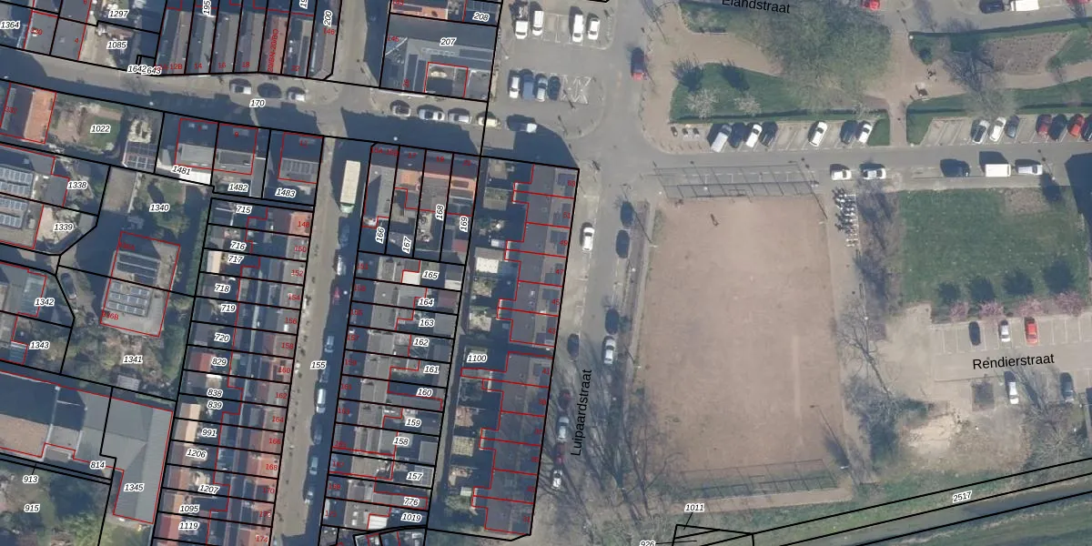 Het perceel waarop Luipaardstraat 47 staat heeft een oppervlakte van 1285 m². Dit is een zeer groot perceel. De perceeloppervlakte wordt geregistreerd door het Kadaster. Gedetailleerde informatie over de maten van dit perceel kunt u vinden in het rapport Kadastrale kaart met maatvoering van Luipaardstraat 47.