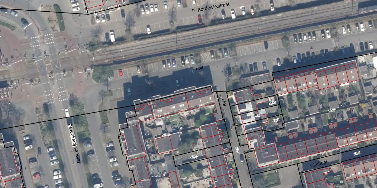 Luit 20 is gelegen op kadastraal perceel RTD13BA4295. Deze kadastrale aanduiding is uniek en wordt gebruikt door het Kadaster om eigendomsrechten en andere zakelijke rechten vast te leggen. Het perceel maakt onderdeel uit van de kadastrale gemeente Rotterdam.