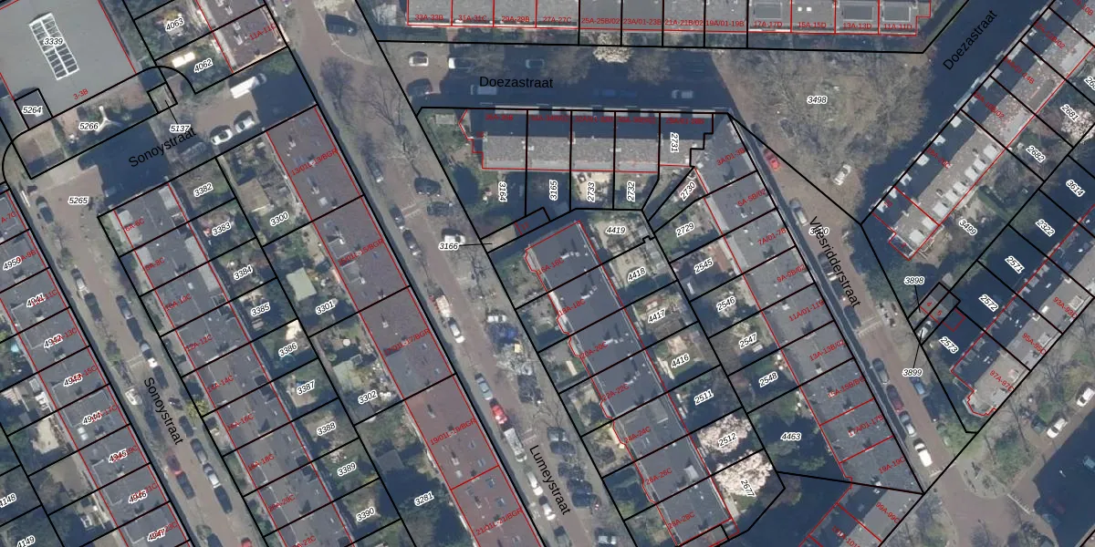 Het perceel waarop Lumeystraat 16-A staat heeft een oppervlakte van 296 m². Dit is een middelgroot perceel. De perceeloppervlakte wordt geregistreerd door het Kadaster. Gedetailleerde informatie over de maten van dit perceel kunt u vinden in het rapport Kadastrale kaart met maatvoering van Lumeystraat 16-A.