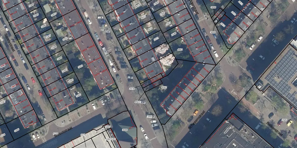 Het perceel waarop Lumeystraat 28-B staat heeft een oppervlakte van 277 m². Dit is een middelgroot perceel. De perceeloppervlakte wordt geregistreerd door het Kadaster. Gedetailleerde informatie over de maten van dit perceel kunt u vinden in het rapport Kadastrale kaart met maatvoering van Lumeystraat 28-B.