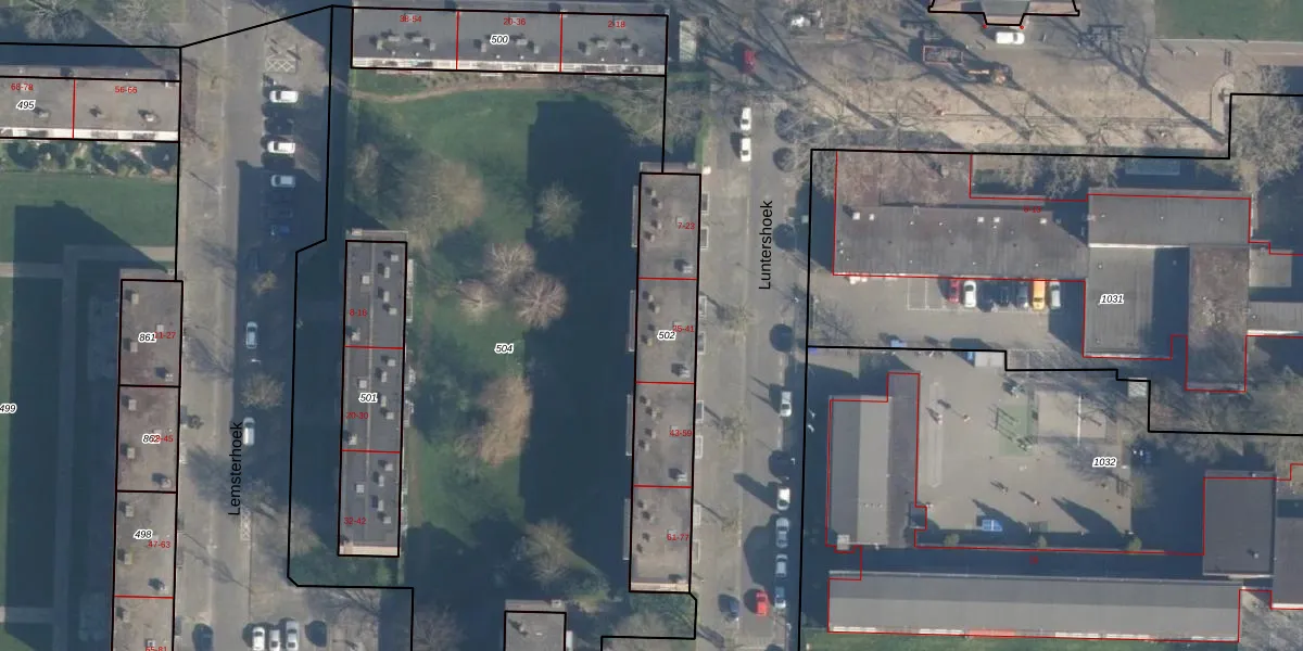 Het perceel waarop Luntershoek 33 staat heeft een oppervlakte van 595 m². Dit is een groot perceel. De perceeloppervlakte wordt geregistreerd door het Kadaster. Gedetailleerde informatie over de maten van dit perceel kunt u vinden in het rapport Kadastrale kaart met maatvoering van Luntershoek 33.