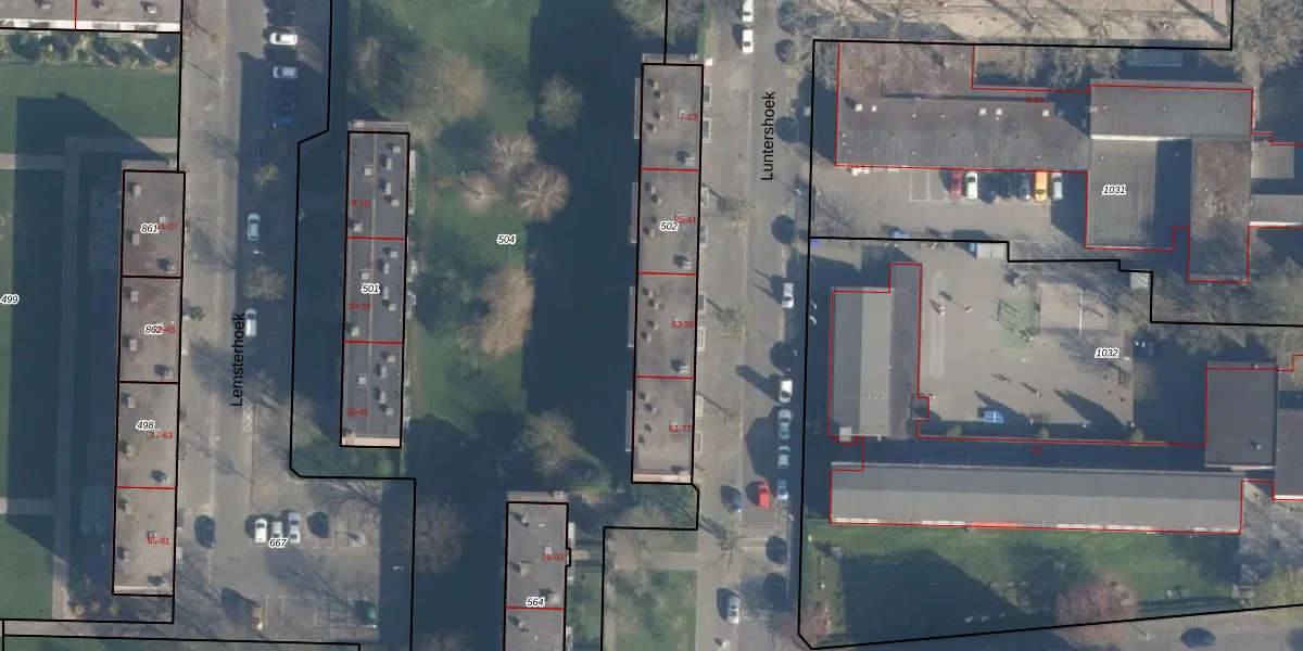 Het perceel waarop Luntershoek 47 staat heeft een oppervlakte van 595 m². Dit is een groot perceel. De perceeloppervlakte wordt geregistreerd door het Kadaster. Gedetailleerde informatie over de maten van dit perceel kunt u vinden in het rapport Kadastrale kaart met maatvoering van Luntershoek 47.