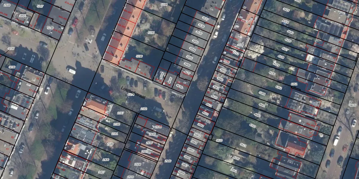 Het perceel waarop Lusthofstraat 1 staat heeft een oppervlakte van 64 m². Dit is een klein perceel. De perceeloppervlakte wordt geregistreerd door het Kadaster. Gedetailleerde informatie over de maten van dit perceel kunt u vinden in het rapport Kadastrale kaart met maatvoering van Lusthofstraat 1.