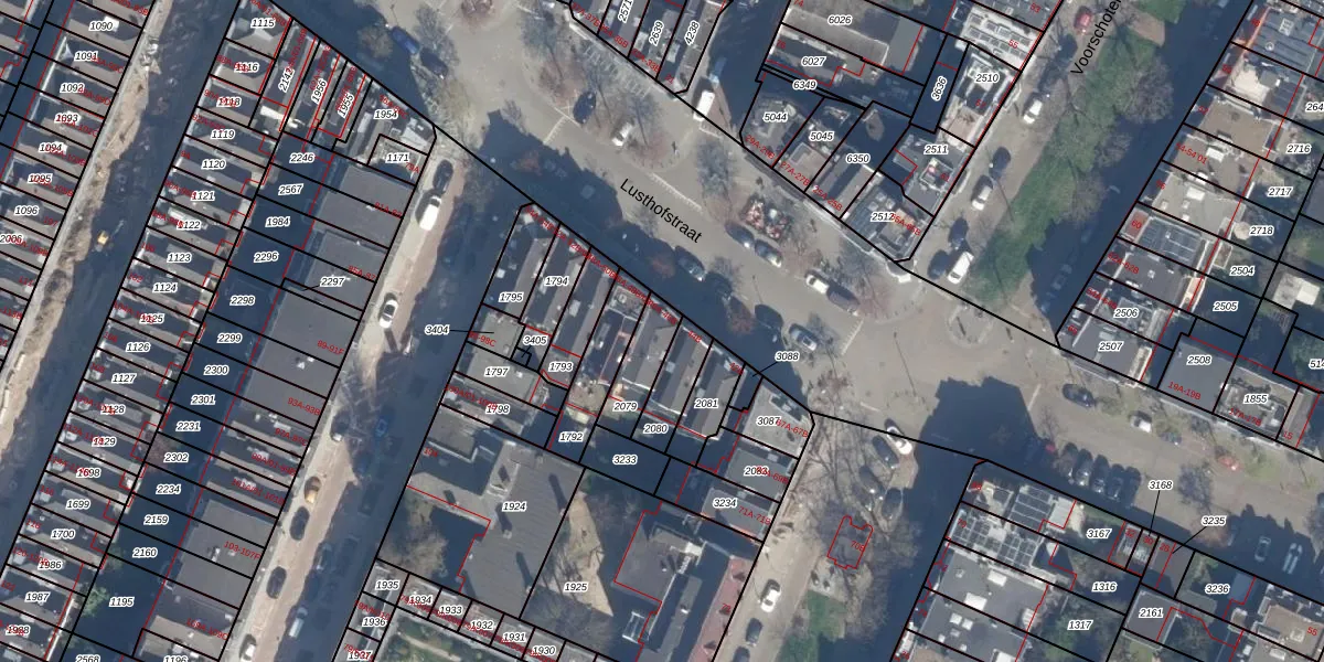 Lusthofstraat 46-B is gelegen op kadastraal perceel KLG00F2079. Deze kadastrale aanduiding is uniek en wordt gebruikt door het Kadaster om eigendomsrechten en andere zakelijke rechten vast te leggen. Het perceel maakt onderdeel uit van de kadastrale gemeente Kralingen.