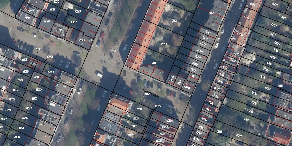 Het perceel waarop Lusthofstraat 9-A staat heeft een oppervlakte van 537 m². Dit is een groot perceel. De perceeloppervlakte wordt geregistreerd door het Kadaster. Gedetailleerde informatie over de maten van dit perceel kunt u vinden in het rapport Kadastrale kaart met maatvoering van Lusthofstraat 9-A.