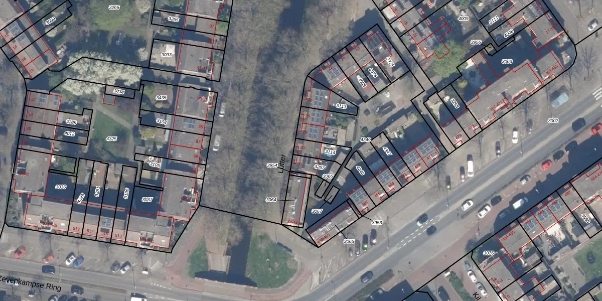 Gebruik de zoekbalk of klik op een perceel voor informatie over de adressen binnen dit perceel.