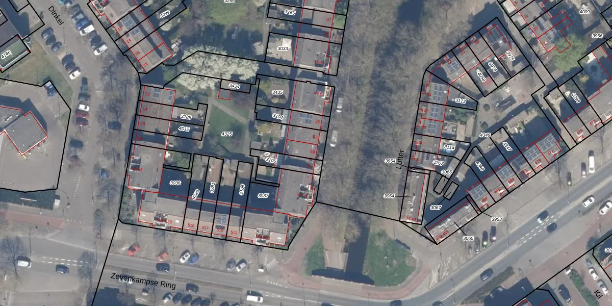 Het perceel waarop Lutter 59 staat heeft een oppervlakte van 1078 m². Dit is een zeer groot perceel. De perceeloppervlakte wordt geregistreerd door het Kadaster. Gedetailleerde informatie over de maten van dit perceel kunt u vinden in het rapport Kadastrale kaart met maatvoering van Lutter 59.