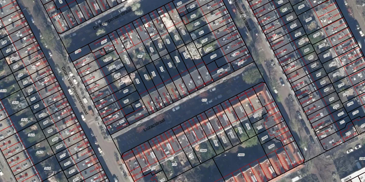 Luzacstraat 11-B is gelegen op kadastraal perceel RTD10AB763. Deze kadastrale aanduiding is uniek en wordt gebruikt door het Kadaster om eigendomsrechten en andere zakelijke rechten vast te leggen. Het perceel maakt onderdeel uit van de kadastrale gemeente Rotterdam.