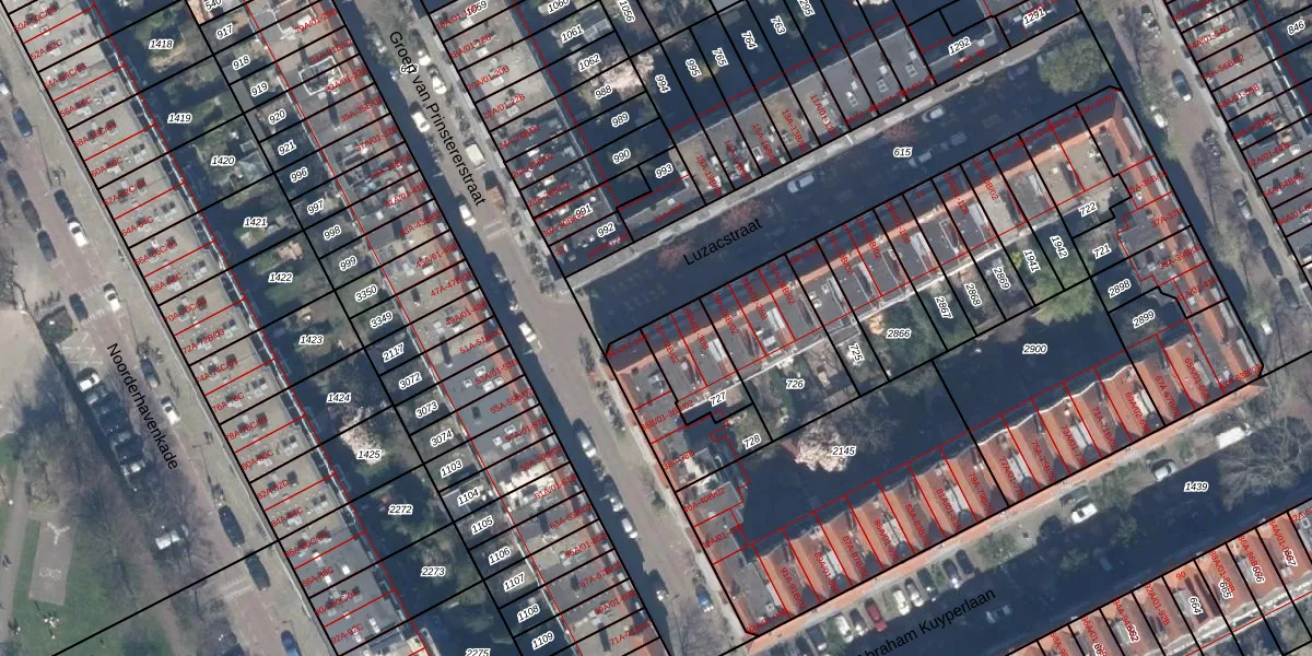 Luzacstraat 32-B-02 is gelegen op kadastraal perceel RTD10AB727. Deze kadastrale aanduiding is uniek en wordt gebruikt door het Kadaster om eigendomsrechten en andere zakelijke rechten vast te leggen. Het perceel maakt onderdeel uit van de kadastrale gemeente Rotterdam.