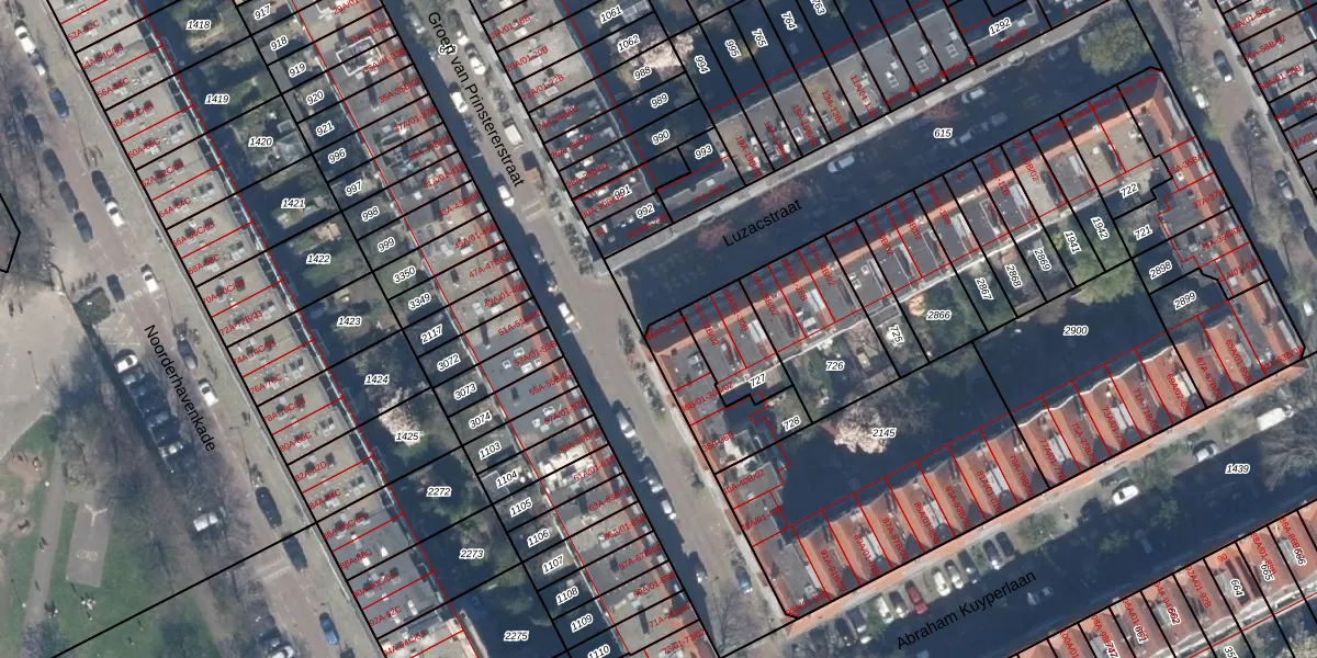 Luzacstraat 34-A-01 is gelegen op kadastraal perceel RTD10AB728. Deze kadastrale aanduiding is uniek en wordt gebruikt door het Kadaster om eigendomsrechten en andere zakelijke rechten vast te leggen. Het perceel maakt onderdeel uit van de kadastrale gemeente Rotterdam.