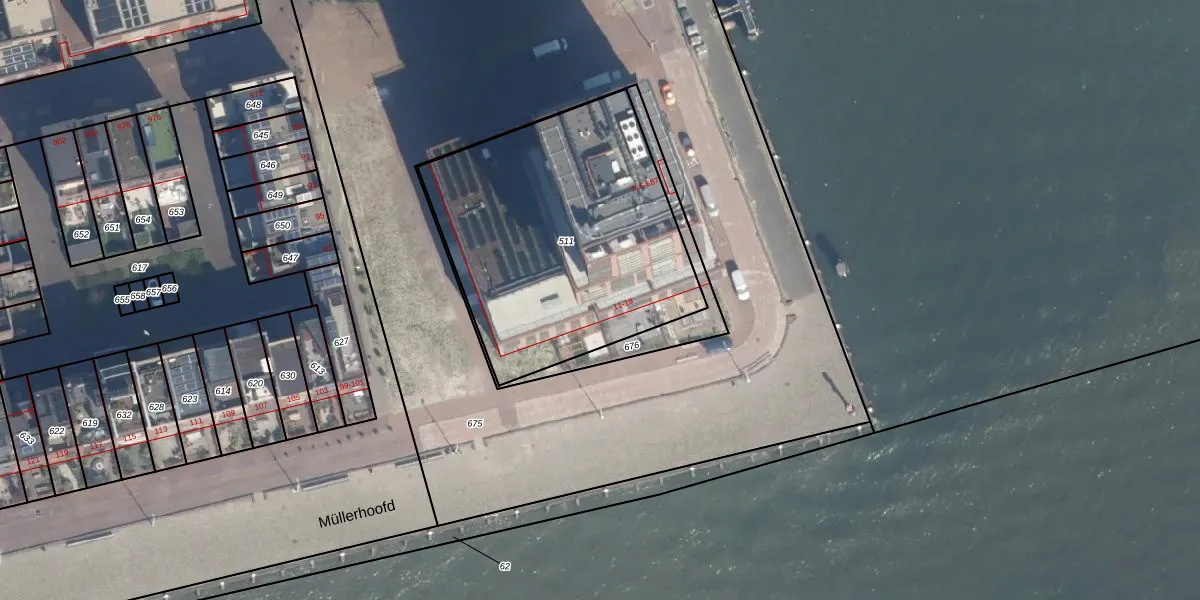 Müllerhoofd 13 is gelegen op kadastraal perceel DHV00G511. Deze kadastrale aanduiding is uniek en wordt gebruikt door het Kadaster om eigendomsrechten en andere zakelijke rechten vast te leggen. Het perceel maakt onderdeel uit van de kadastrale gemeente Delfshaven.