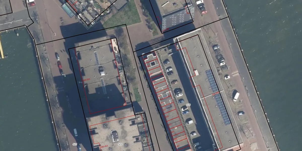 Het adres is gelegen op perceel 518 in de sectie G en de kadastrale gemeente Delfshaven. De kadastrale aanduiding is aldus DHV00-G-518. Het perceel is met 3413 m² relatief groot. Het gemiddelde ligt in de kadastrale gemeente Delfshaven op 628,89 m². Het kleinste perceel in de kadastrale gemeente is 0 m² groot. De grootste perceeloppervlakte is 22,2 ha. Op het perceel zijn 79 adressen aanwezig. In de Basisregistratie Kadaster (BRK) werden de grenzen van het perceel geregistreerd op 19-11-2003.