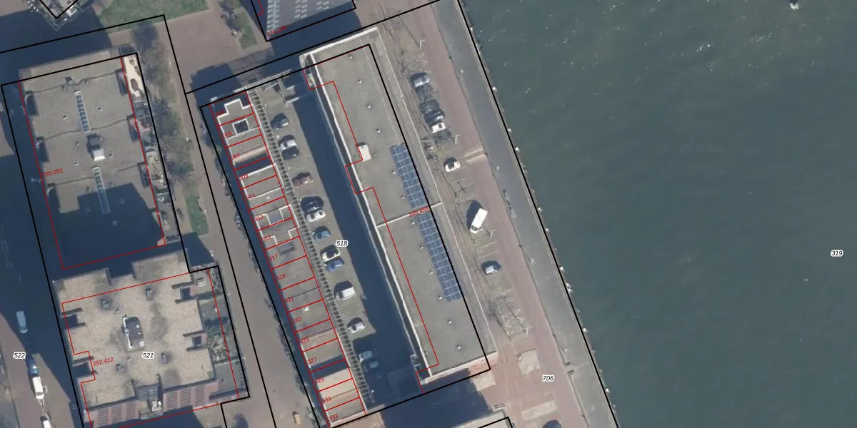 Het adres is gelegen op perceel 518 in de sectie G en de kadastrale gemeente Delfshaven. De kadastrale aanduiding is aldus DHV00-G-518. Het perceel is met 3413 m² relatief groot. Het gemiddelde ligt in de kadastrale gemeente Delfshaven op 628,89 m². Het kleinste perceel in de kadastrale gemeente is 0 m² groot. De grootste perceeloppervlakte is 22,2 ha. Op het perceel liggen in totaal 79 adressen. In de Basisregistratie Kadaster (BRK) werden de grenzen van het perceel geregistreerd op 19-11-2003.