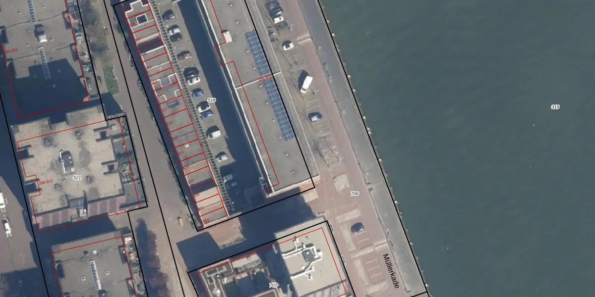 Het adres is gelegen op perceel 518 in de sectie G en de kadastrale gemeente Delfshaven. De kadastrale aanduiding is aldus DHV00-G-518. Het perceel is met 3413 m² relatief groot. Het gemiddelde ligt in de kadastrale gemeente Delfshaven op 628,61 m². Het kleinste perceel in de kadastrale gemeente is 0 m² groot. De grootste perceeloppervlakte is 22,2 ha. Op het perceel liggen in totaal 79 adressen. De huidige grenzen van het perceel zijn digitaal in de Basisregistratie Kadaster (BRK) geregistreerd op 19-11-2003.