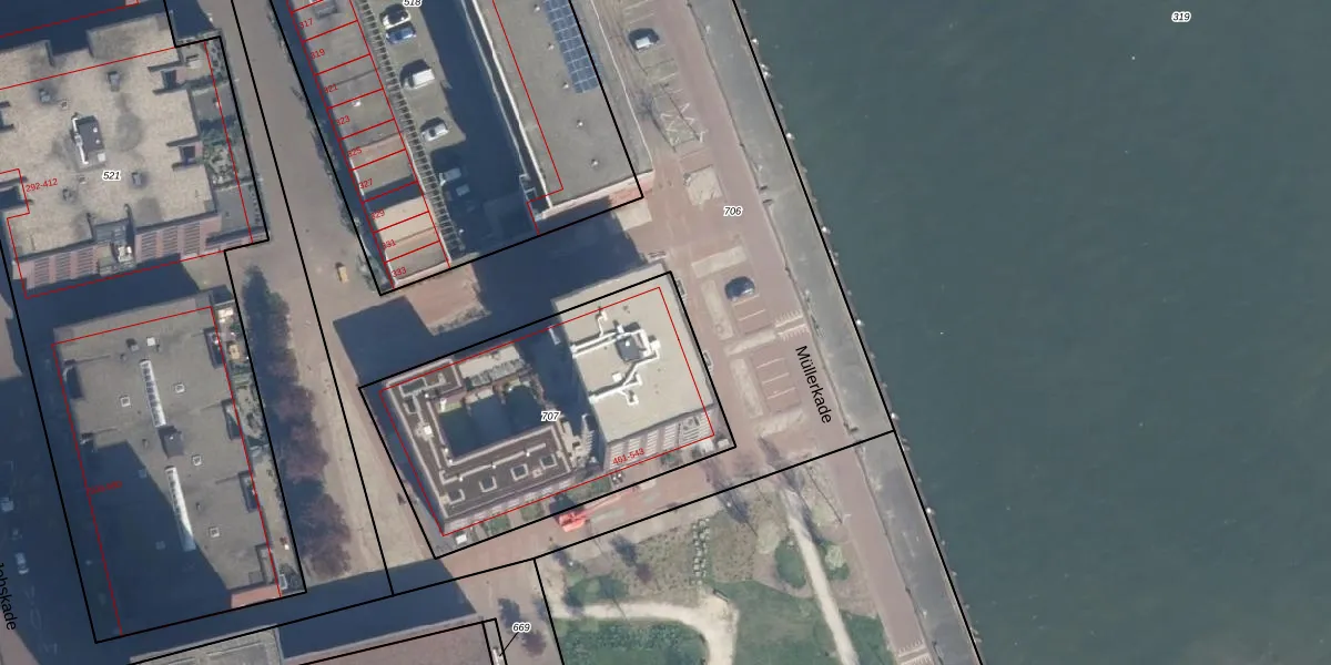 Het adres is gelegen op perceel 707 in de sectie G en de kadastrale gemeente Delfshaven. De kadastrale aanduiding is aldus DHV00-G-707. Het perceel is met 1378 m² relatief groot. Het gemiddelde ligt in de kadastrale gemeente Delfshaven op 628,61 m². Het grootste perceel in de kadastrale gemeente is 22,2 ha. Het kleinste perceel heeft een oppervlakte van 0 m². Er zijn 42 adressen aanwezig op het perceel. In de Basisregistratie Kadaster (BRK) werden de grenzen van het perceel geregistreerd op 29-09-2025.