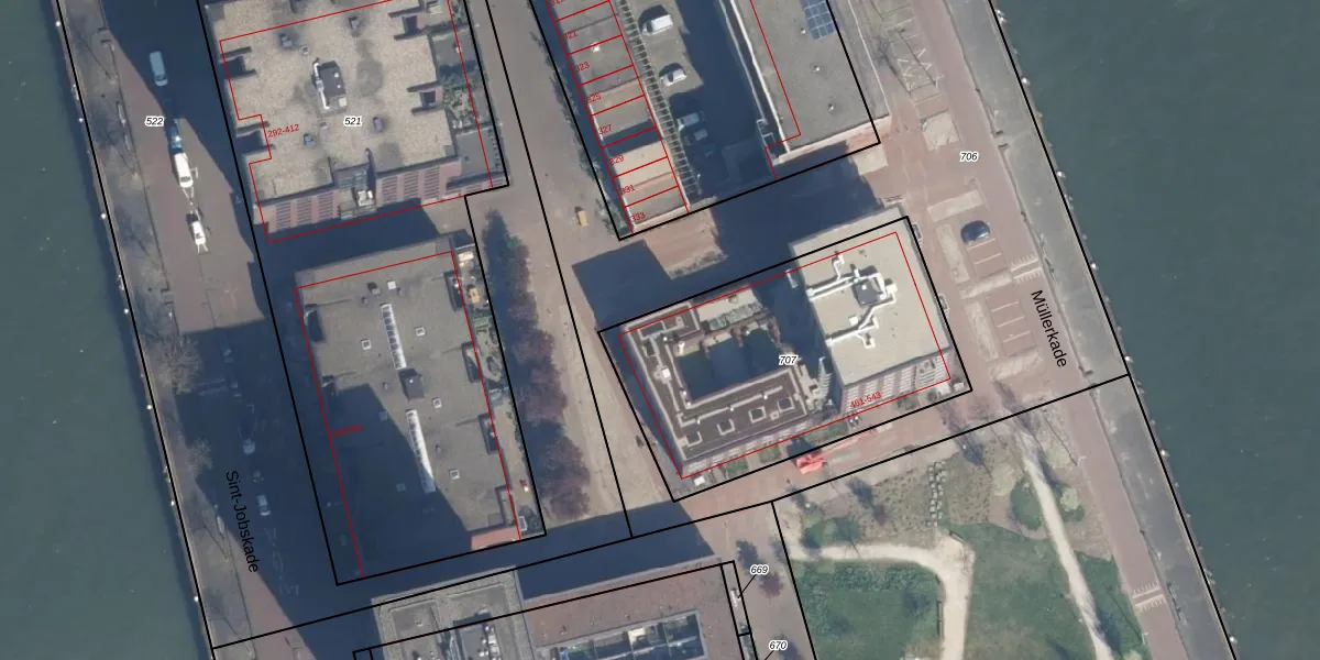 Het adres is gelegen op perceel 707 in de sectie G en de kadastrale gemeente Delfshaven. De kadastrale aanduiding is aldus DHV00-G-707. Het perceel is met 1378 m² relatief groot. Het gemiddelde ligt in de kadastrale gemeente Delfshaven op 628,53 m². Het grootste perceel in de kadastrale gemeente is 22,2 ha. Het kleinste perceel heeft een oppervlakte van 0 m². Op het perceel zijn 42 adressen aanwezig. De huidige grenzen van het perceel zijn digitaal in de Basisregistratie Kadaster (BRK) geregistreerd op 29-09-2025.