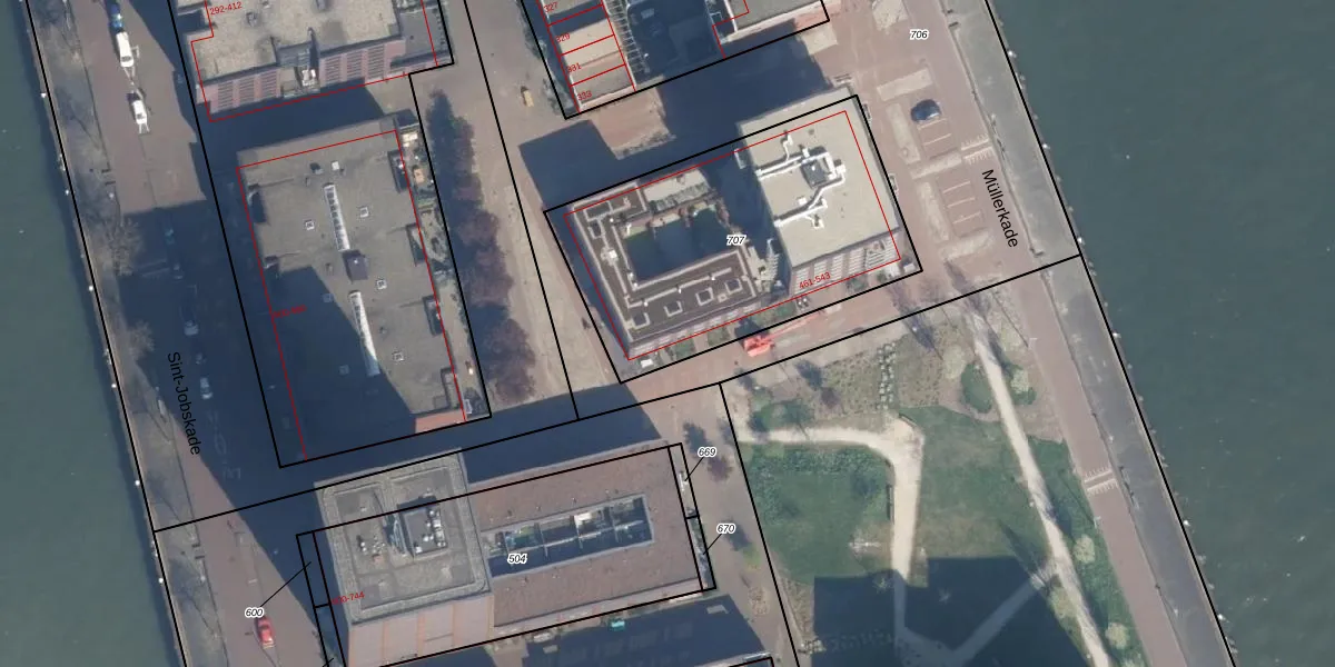 Het adres is gelegen op perceel 707 in de sectie G en de kadastrale gemeente Delfshaven. De kadastrale aanduiding is aldus DHV00-G-707. Het perceel is met 1378 m² relatief groot. Het gemiddelde ligt in de kadastrale gemeente Delfshaven op 628,53 m². Het grootste perceel in de kadastrale gemeente is 22,2 ha. Het kleinste perceel heeft een oppervlakte van 0 m². Op het perceel zijn 42 adressen aanwezig. De huidige grenzen van het perceel zijn digitaal in de Basisregistratie Kadaster (BRK) geregistreerd op 29-09-2025.