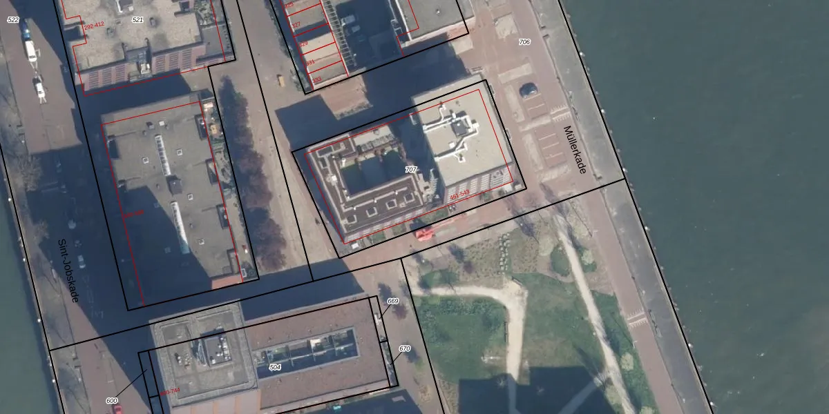 Het adres is gelegen op perceel 707 in de sectie G en de kadastrale gemeente Delfshaven. De kadastrale aanduiding is aldus DHV00-G-707. Het perceel is met 1378 m² relatief groot. Het gemiddelde ligt in de kadastrale gemeente Delfshaven op 628,53 m². Het grootste perceel in de kadastrale gemeente is 22,2 ha. Het kleinste perceel heeft een oppervlakte van 0 m². Op het perceel zijn 42 adressen aanwezig. In de Basisregistratie Kadaster (BRK) werden de grenzen van het perceel geregistreerd op 29-09-2025.
