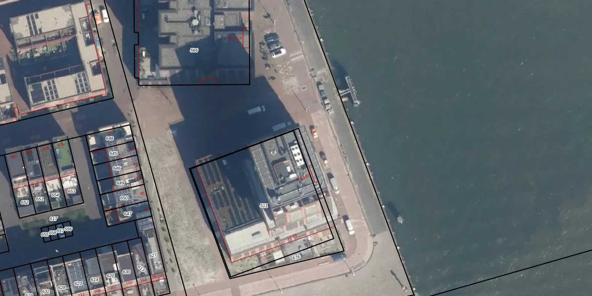 Het perceel waarop het adres ligt is DHV00-G-511. De afkorting 'DHV00' staat voor kadastrale gemeente Delfshaven. De gemiddelde perceeloppervlakte in de kadastrale gemeente Delfshaven is 628,53 m². Dit perceel is met zijn 1447 m² dus groter dan gemiddeld. Het kleinste perceel in de kadastrale gemeente is 0 m² groot. De grootste perceeloppervlakte is 22,2 ha. Er zijn 8 adressen aanwezig op het perceel. De huidige grenzen van het perceel zijn digitaal in de Basisregistratie Kadaster (BRK) geregistreerd op 15-08-2007.