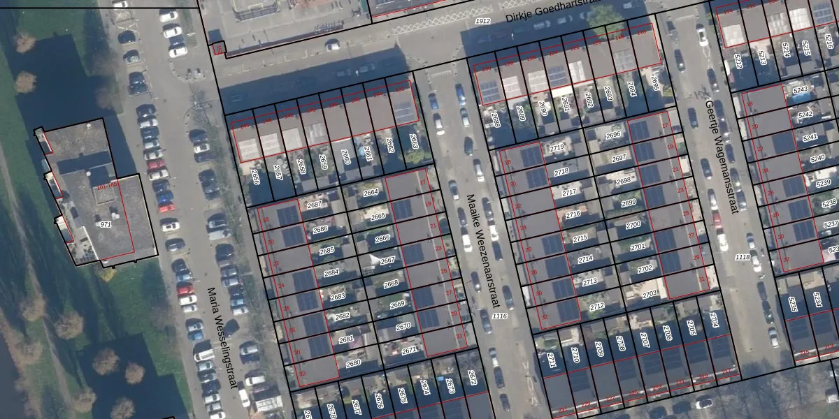 Maaike Weezenaarstraat 19 is gelegen op kadastraal perceel KLG00L2665. Deze kadastrale aanduiding is uniek en wordt gebruikt door het Kadaster om eigendomsrechten en andere zakelijke rechten vast te leggen. Het perceel maakt onderdeel uit van de kadastrale gemeente Kralingen.