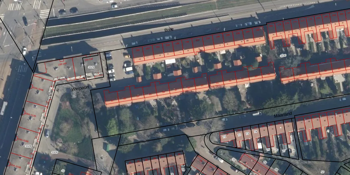 Het adres is gelegen op perceel 3330 in de sectie F en de kadastrale gemeente Charlois. De kadastrale aanduiding is aldus CLS00-F-3330. De oppervlakte van het perceel is 8515 m². Dat is groter dan gemiddeld in Charlois, waar de gemiddelde perceeloppervlakte op 1147,69 m² ligt. De grootste perceeloppervlakte in de kadastrale gemeente is 1,09 km². De kleinste oppervlakte bedraagt 0 m². Op het perceel liggen in totaal 53 adressen. De laatste wijziging in het de Basisregistratie Kadaster (BRK) was op 14-04-2003.