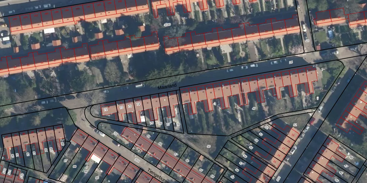 Het perceel waarop Maarland 60 staat heeft een oppervlakte van 2174 m². Dit is een zeer groot perceel. De perceeloppervlakte wordt geregistreerd door het Kadaster. Gedetailleerde informatie over de maten van dit perceel kunt u vinden in het rapport Kadastrale kaart met maatvoering van Maarland 60.