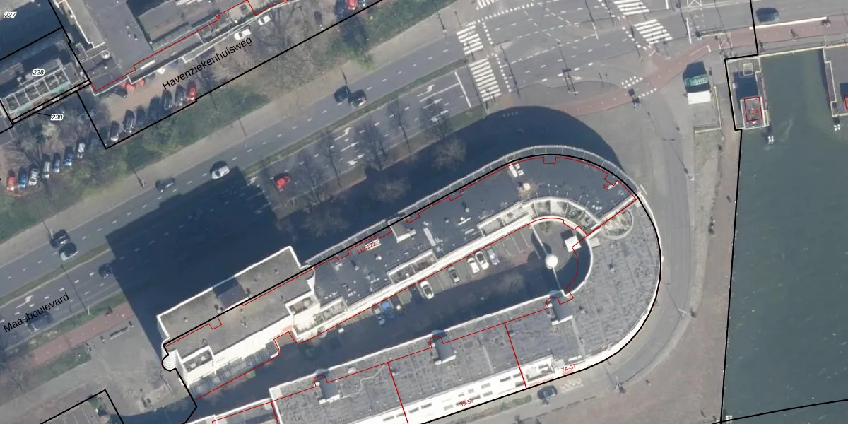 Maasboulevard 124 is gelegen op kadastraal perceel RTD04AH341. Deze kadastrale aanduiding is uniek en wordt gebruikt door het Kadaster om eigendomsrechten en andere zakelijke rechten vast te leggen. Het perceel maakt onderdeel uit van de kadastrale gemeente Rotterdam.