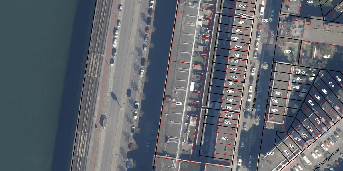Het perceel waarop het adres ligt is CLS00-D-8467. De afkorting 'CLS00' staat voor kadastrale gemeente Charlois. De oppervlakte van het perceel is 5515 m². Dat is groter dan gemiddeld in Charlois, waar de gemiddelde perceeloppervlakte op 1147,69 m² ligt. Het grootste perceel in de kadastrale gemeente is 1,09 km². Het kleinste perceel heeft een oppervlakte van 0 m². Op het perceel liggen in totaal 63 adressen. De laatste wijziging in het de Basisregistratie Kadaster (BRK) was op 26-09-2003.