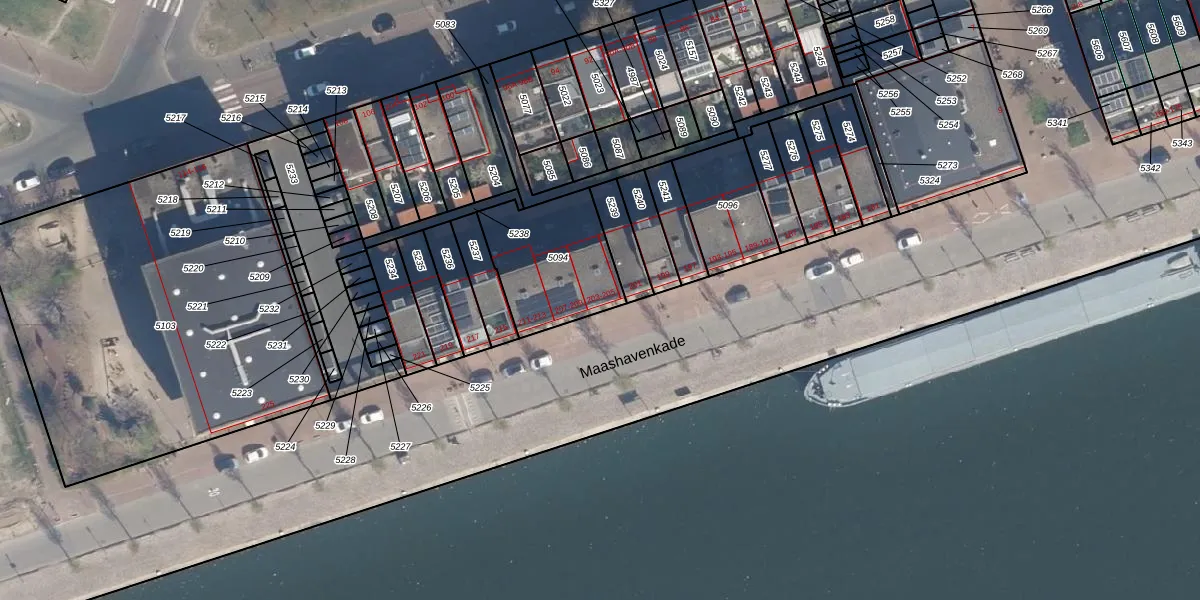 Maashavenkade 203 is gelegen op kadastraal perceel CLS00E5094. Deze kadastrale aanduiding is uniek en wordt gebruikt door het Kadaster om eigendomsrechten en andere zakelijke rechten vast te leggen. Het perceel maakt onderdeel uit van de kadastrale gemeente Charlois.