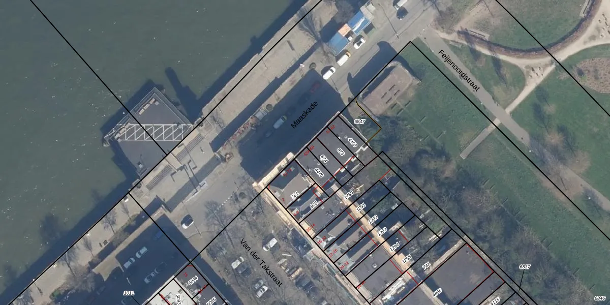 Maaskade 64 is gelegen op kadastraal perceel RTD05Q4470. Deze kadastrale aanduiding is uniek en wordt gebruikt door het Kadaster om eigendomsrechten en andere zakelijke rechten vast te leggen. Het perceel maakt onderdeel uit van de kadastrale gemeente Rotterdam.