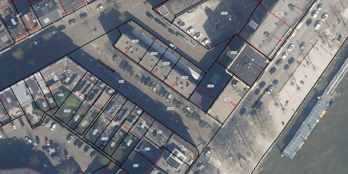 Maasstraat 12-D is gelegen op kadastraal perceel RTD04AG1068. Deze kadastrale aanduiding is uniek en wordt gebruikt door het Kadaster om eigendomsrechten en andere zakelijke rechten vast te leggen. Het perceel maakt onderdeel uit van de kadastrale gemeente Rotterdam.