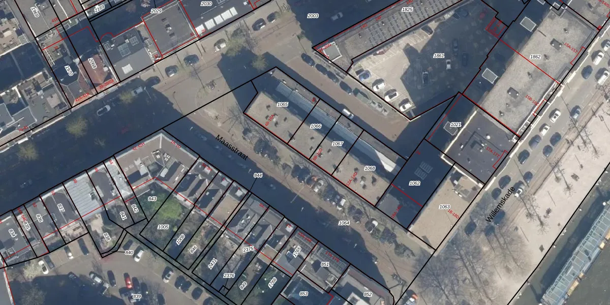 Maasstraat 8-C is gelegen op kadastraal perceel RTD04AG1066. Deze kadastrale aanduiding is uniek en wordt gebruikt door het Kadaster om eigendomsrechten en andere zakelijke rechten vast te leggen. Het perceel maakt onderdeel uit van de kadastrale gemeente Rotterdam.
