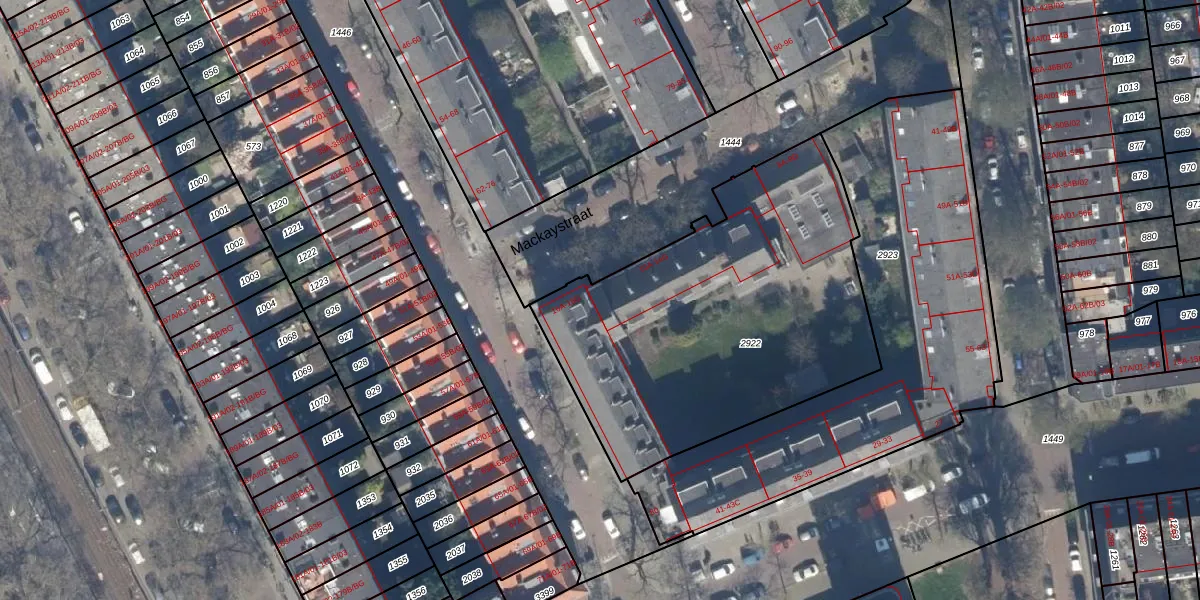 Mackaystraat 12-A is gelegen op kadastraal perceel RTD10AB2922. Deze kadastrale aanduiding is uniek en wordt gebruikt door het Kadaster om eigendomsrechten en andere zakelijke rechten vast te leggen. Het perceel maakt onderdeel uit van de kadastrale gemeente Rotterdam.