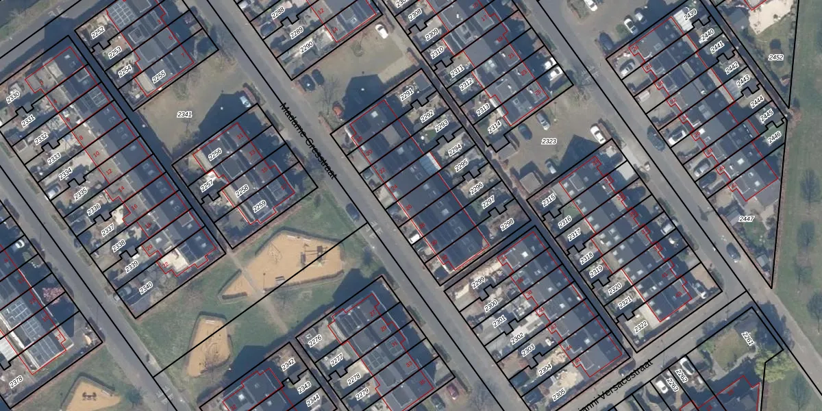 Gebruik de zoekbalk of klik op een perceel voor informatie over de adressen binnen dit perceel.