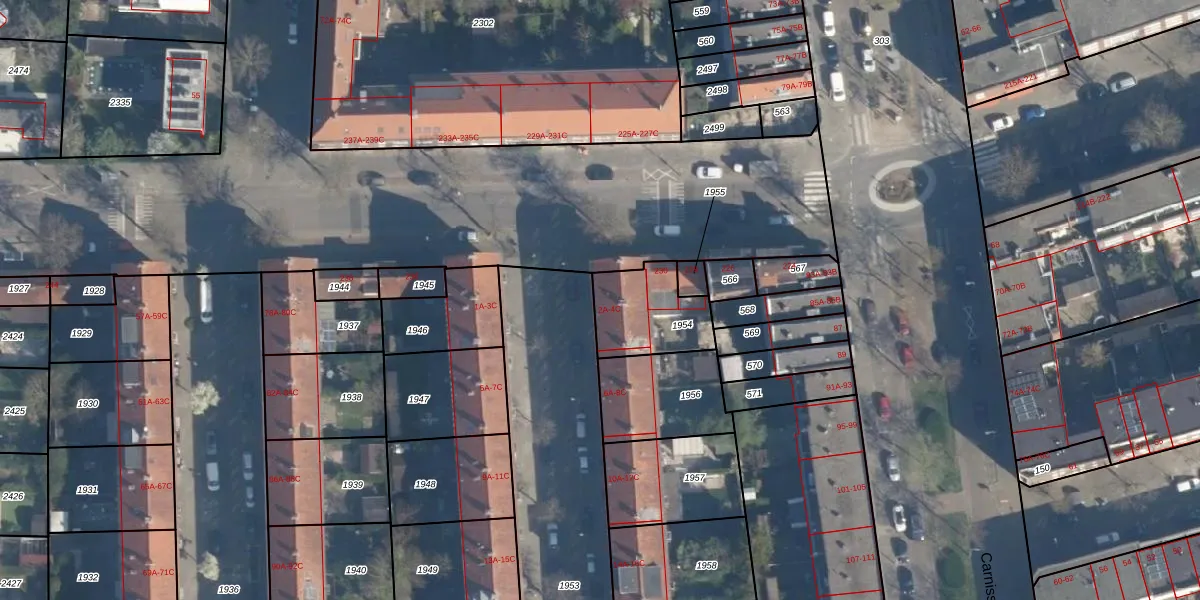 Het adres is gelegen op perceel 1954 in de sectie H en de kadastrale gemeente Charlois. De kadastrale aanduiding is aldus CLS00-H-1954. Het perceel is kleiner dan gemiddeld in Charlois. Het perceel is 259 m² groot, terwijl het gemiddelde ligt op 1147,95 m². Het grootste perceel in de kadastrale gemeente is 1,09 km². Het kleinste perceel heeft een oppervlakte van 0 m². Op het perceel zijn 7 adressen aanwezig. De laatste wijziging in het de Basisregistratie Kadaster (BRK) was op 30-11-2006.