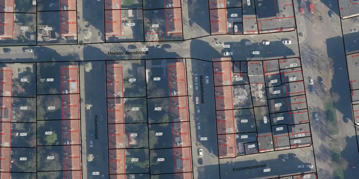 Madeliefstraat 33-A is gelegen op kadastraal perceel CLS00H2453. Deze kadastrale aanduiding is uniek en wordt gebruikt door het Kadaster om eigendomsrechten en andere zakelijke rechten vast te leggen. Het perceel maakt onderdeel uit van de kadastrale gemeente Charlois.