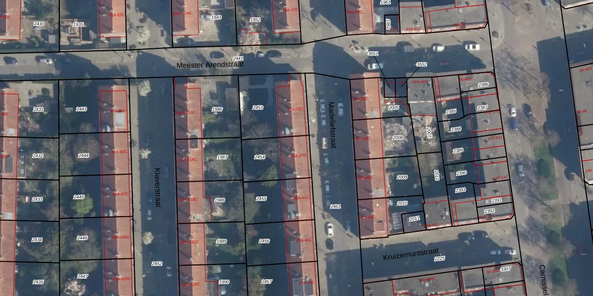 Madeliefstraat 35-B is gelegen op kadastraal perceel CLS00H2454. Deze kadastrale aanduiding is uniek en wordt gebruikt door het Kadaster om eigendomsrechten en andere zakelijke rechten vast te leggen. Het perceel maakt onderdeel uit van de kadastrale gemeente Charlois.