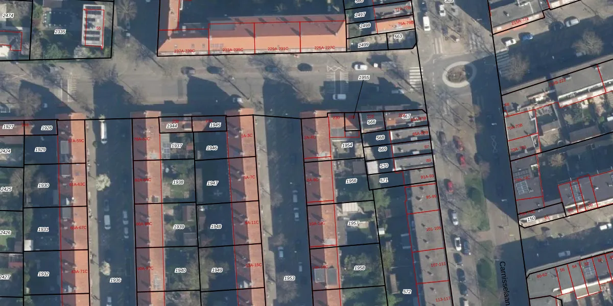 Het adres is gelegen op perceel 1954 in de sectie H en de kadastrale gemeente Charlois. De kadastrale aanduiding is aldus CLS00-H-1954. Het perceel is kleiner dan gemiddeld in Charlois. Het perceel is 259 m² groot, terwijl het gemiddelde ligt op 1147,95 m². Het grootste perceel in de kadastrale gemeente is 1,09 km². Het kleinste perceel heeft een oppervlakte van 0 m². Op het perceel zijn 7 adressen aanwezig. In de Basisregistratie Kadaster (BRK) werden de grenzen van het perceel geregistreerd op 30-11-2006.